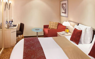 This exclusive 24-hour lounge features a large-screen TV, reading areas stocked with magazines, newspapers, and books, plus a continental breakfast. Complimentary pre-dinner drinks and tapas are served 5:00 PM –8:00 PM daily, and the dedicated concierge can help arrange your specialty dining, shore excursions, and even handle inquiries about various ports of call.