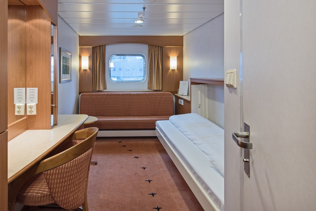 These standard outside cabins for up to two people on the middle decks have separate beds, one of which converts into a sofa.