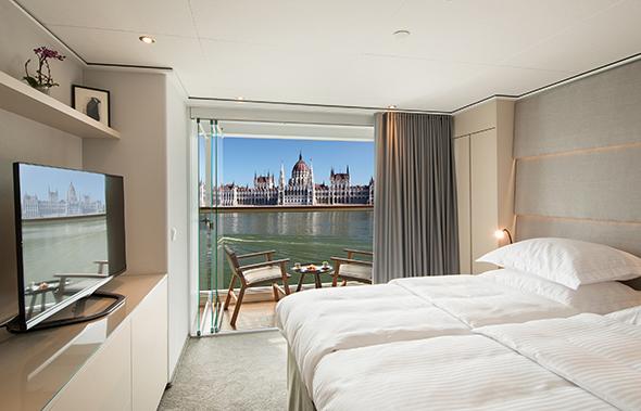 Emerald Panorama Balcony Suite Category: C, B, A, R, P Size: 180 sqft The Emerald Panorama Balcony Suite is a completely new type of cabin that’s unique to European river cruising. These spectacular suites boast our revolutionary indoor balcony design, complete with decking area, table and chairs – generating an entirely new space for you to enjoy the landscapes you pass. With the touch of a button, the upper part of the cabin’s floor-to-ceiling window drops down to unveil uninterrupted views of the stunning scenery to bring the outdoors in. Included in your suite: Indoor balcony with open-air system | Bathroom with shower, indulgent toiletries and hair dryer | Complimentary bathrobes and slippers | Complimentary bottled water, restocked daily | Complimentary WiFi | Queen-size hotel-style bed | Telephone | Safe for your valuables | Individual climate control | Flat screen TV and infotainment system | Mini-fridge
